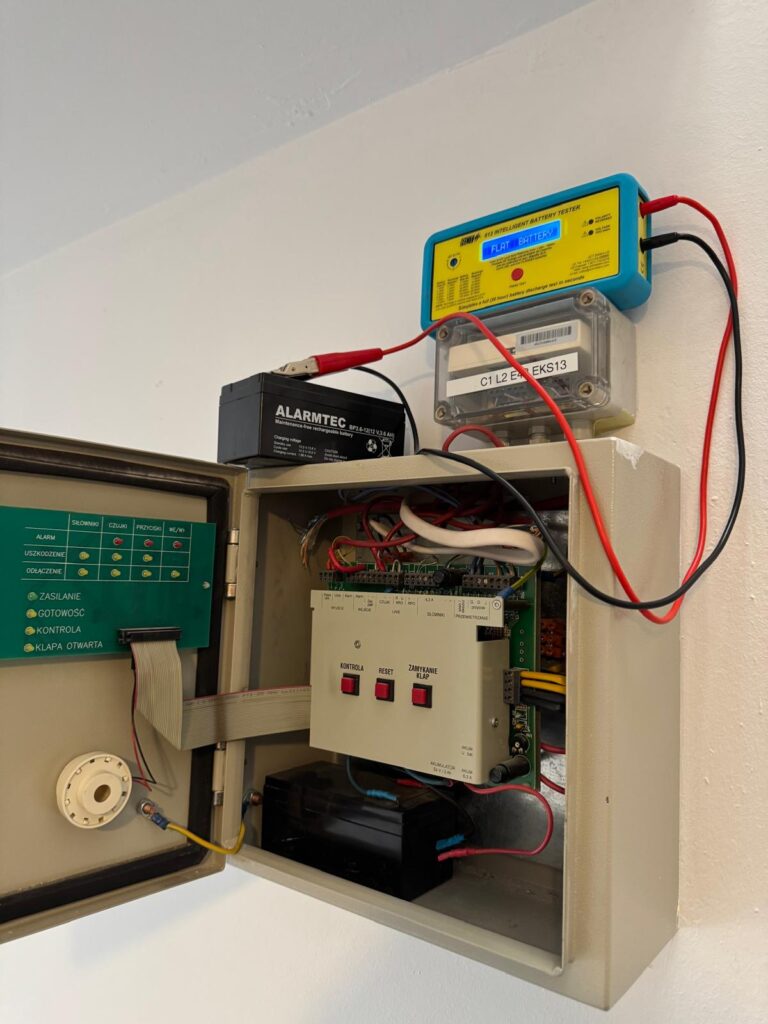 Podczas przeglądu systemu oddymiania sprawdzamy, czy wszystkie urządzenia przeciwpożarowe funkcjonują zgodnie z obowiązującymi przepisami oraz wytycznymi producenta. Tylko wtedy system może skutecznie wspierać ewakuację i wydłużać czas potrzebny na ratunek, a także wspomagać straż pożarną w działaniach ratunkowych.